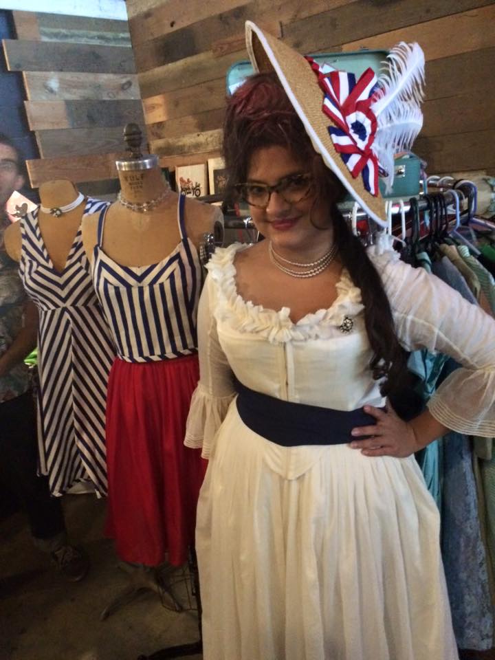 First worn: To accessorize my challenge 6 round gown shhhhh I made this first… but in public at my booth at the local Bastille Day Festival.
