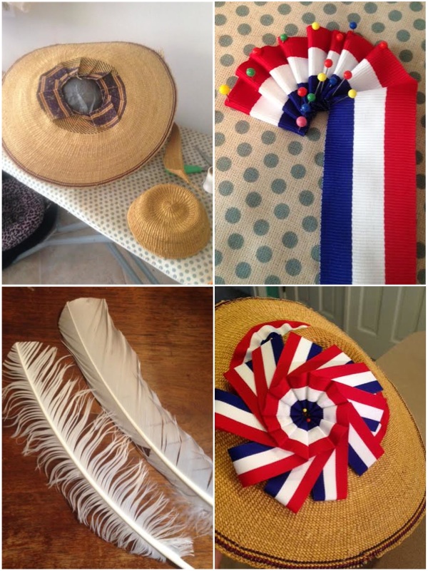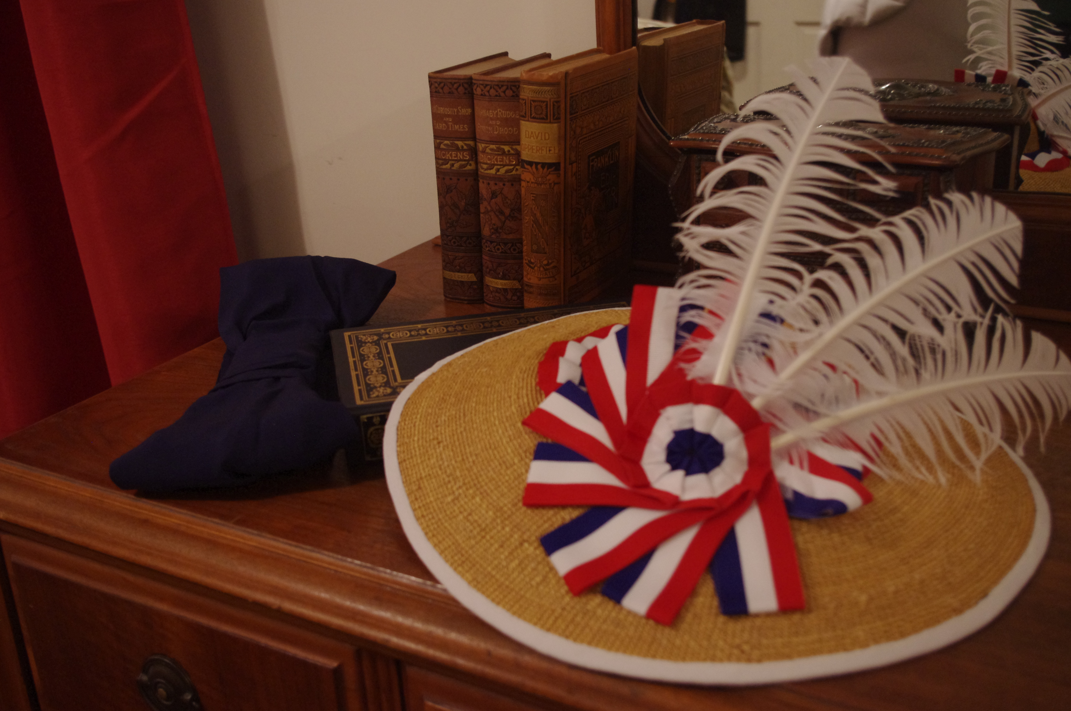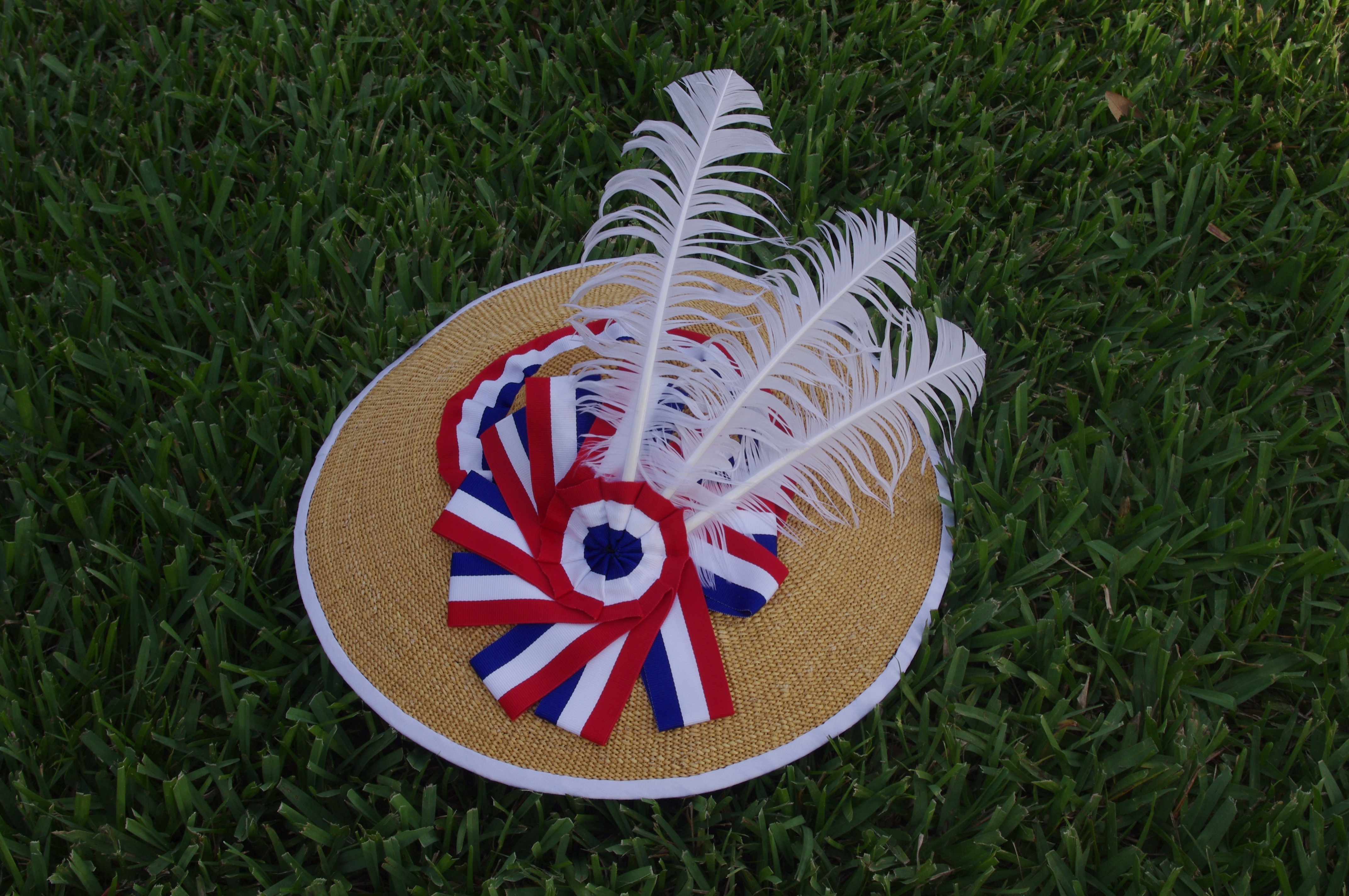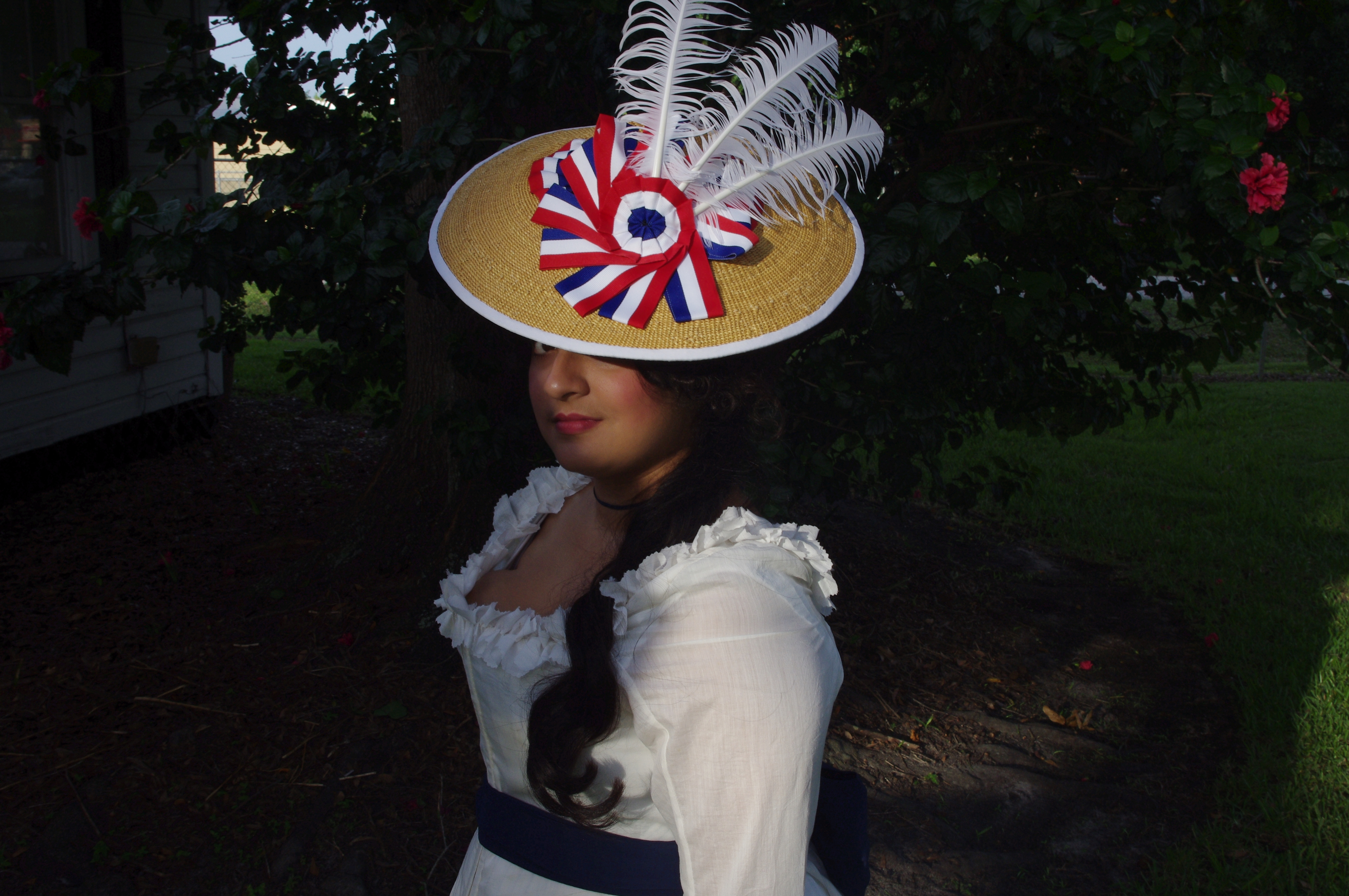 So you may have all ready had a glance of this hat in my out of my comfort zone post. I decided I wanted to represent the French Revolution at our local Bastille Day festival. And yes I know the dress I made has much more to do with the aristocracy, but I could fly my colors on my hat. I made a Tri-Color cockade and curled some turkey feathers to adorn the hat. I love making cockades now and want to put them on everything! Here is an article explaining the symbolism and history of cockades. Scroll for inspiration and more hat details.