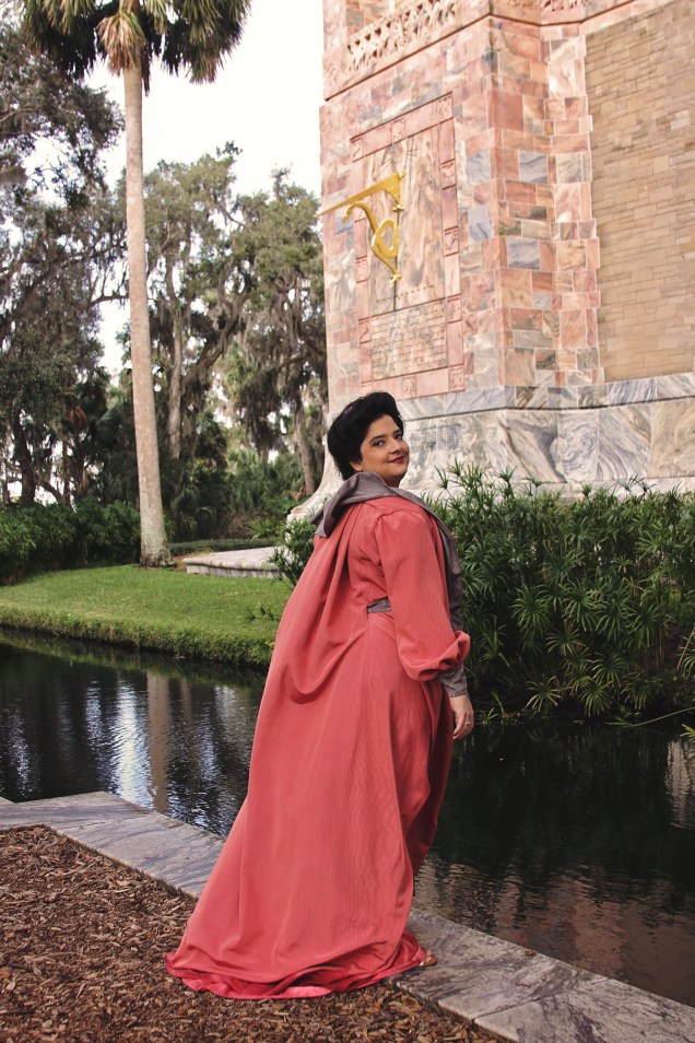 The intriguing mix of Neo-Gothic Art Deco at Architect Milton B. Medary‘s Singing Tower inspired the creation of tea gown with matching under gown and overbust corset. Bok Tower Gardens was the dream of Edward W. Bok the editor of Ladies’ Home Journal from 1889-1919. The sprawling grounds were designed by Frederick Law Olmsted Jr. the son of the renowned designer of the Great Colombian Exhibition in Chicago.